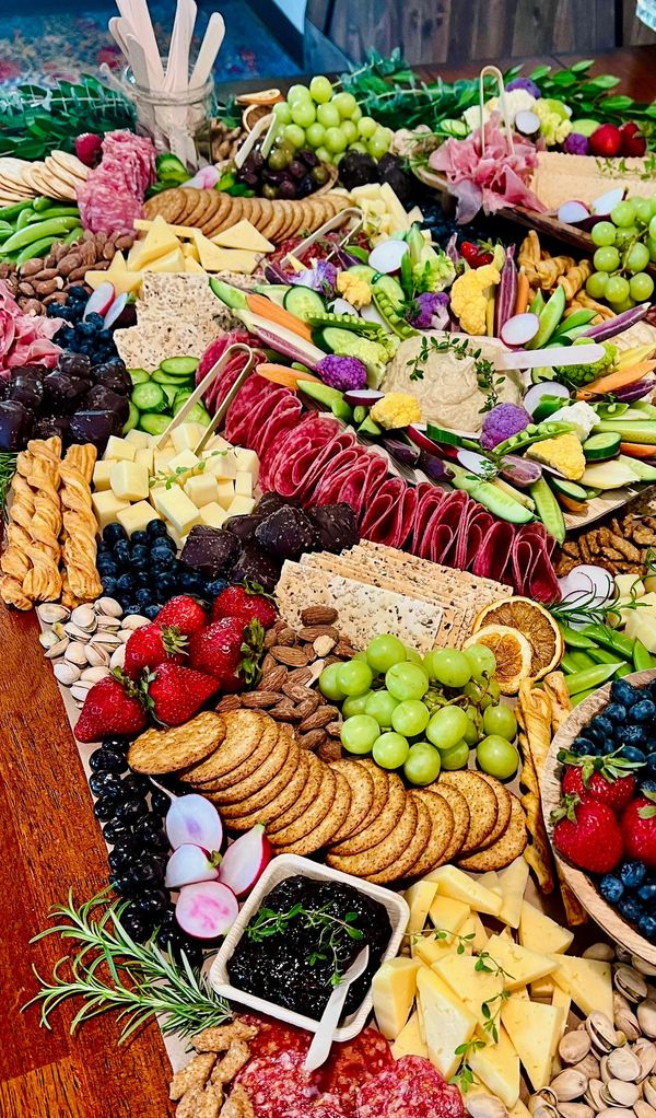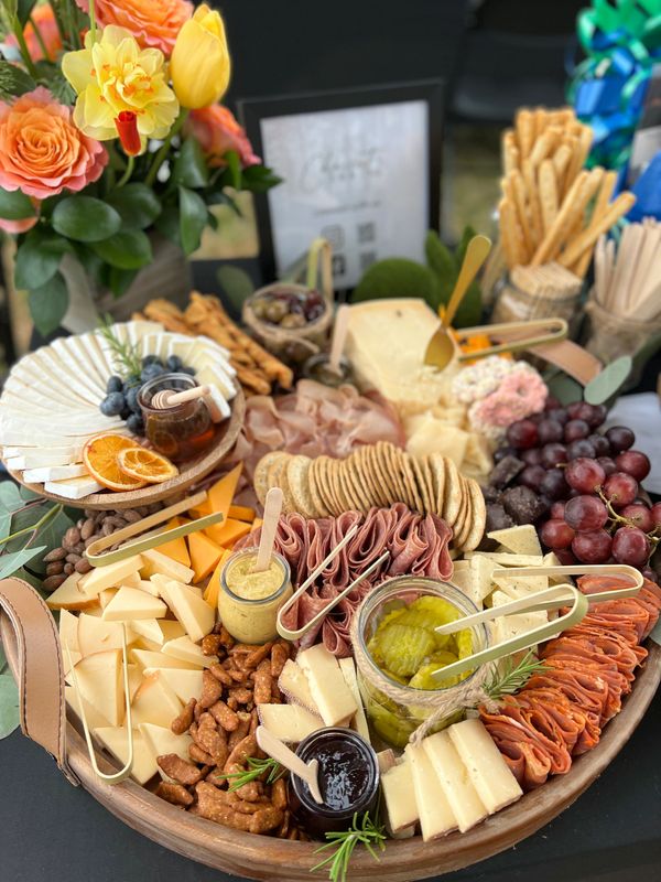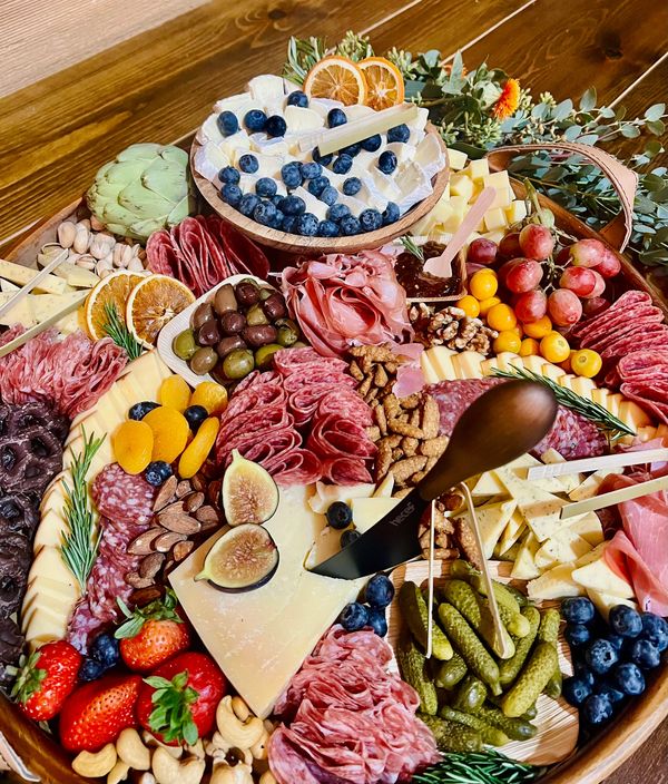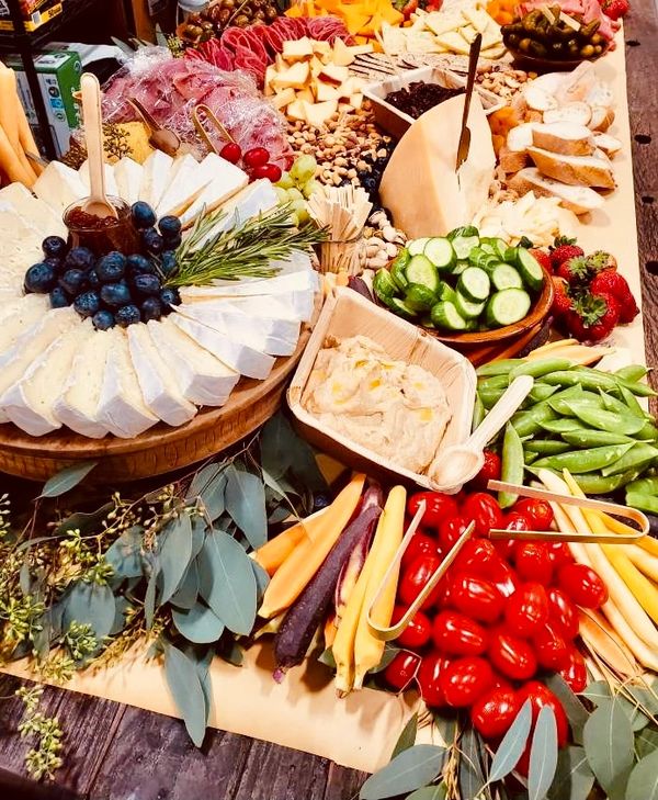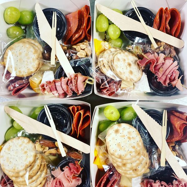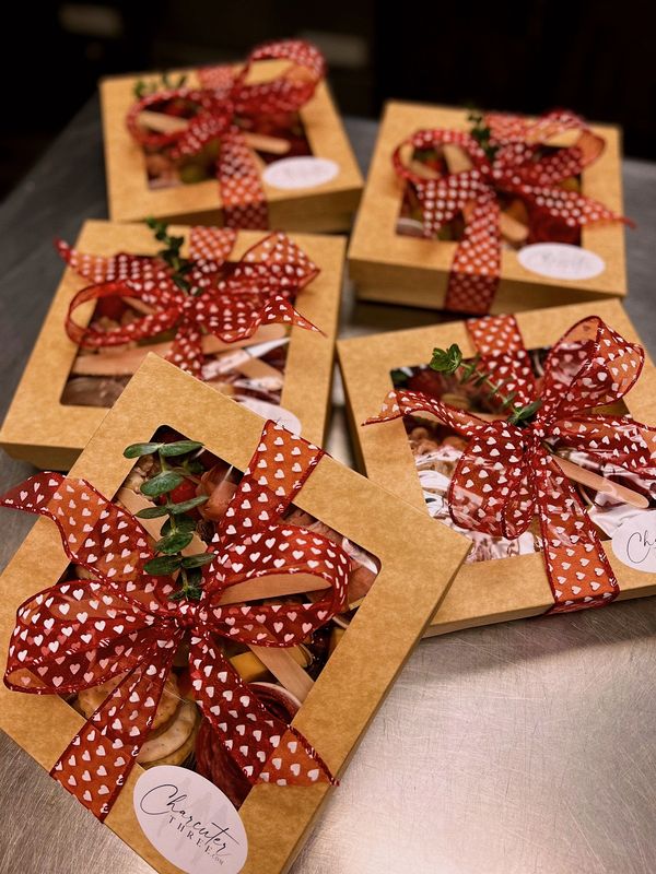 Our Large (2-4 ppl) and Couple Grab-n-Go boxes are available here as well as our new Cheesy Box! Offering 5 cheeses including Double Creme Brie, Aged Parmesan, Aged White Cheddar, Creamy Havarti and locally curated Smoked Gouda Pimento Cheese!